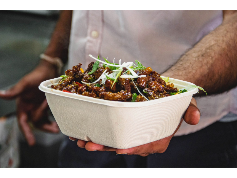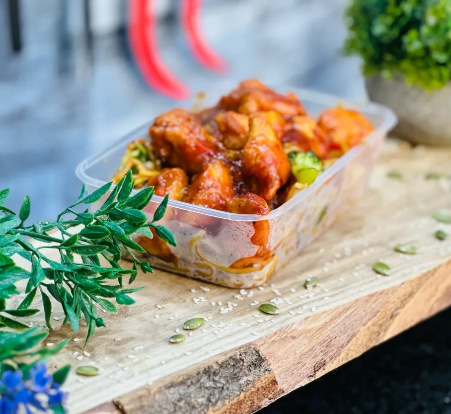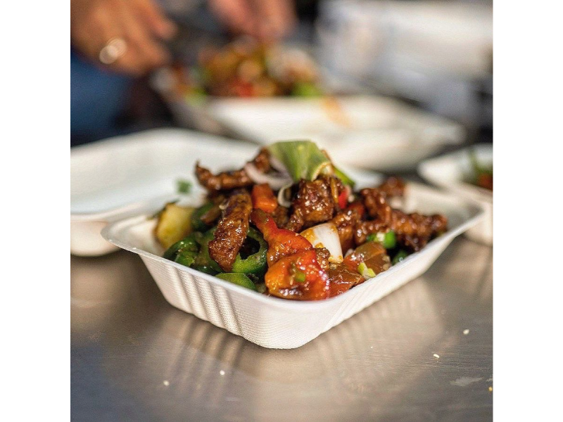 Pan seared in season vegetables, organic quinoa w/ hot wok seared oriental beef steak in sweet and sour glaze